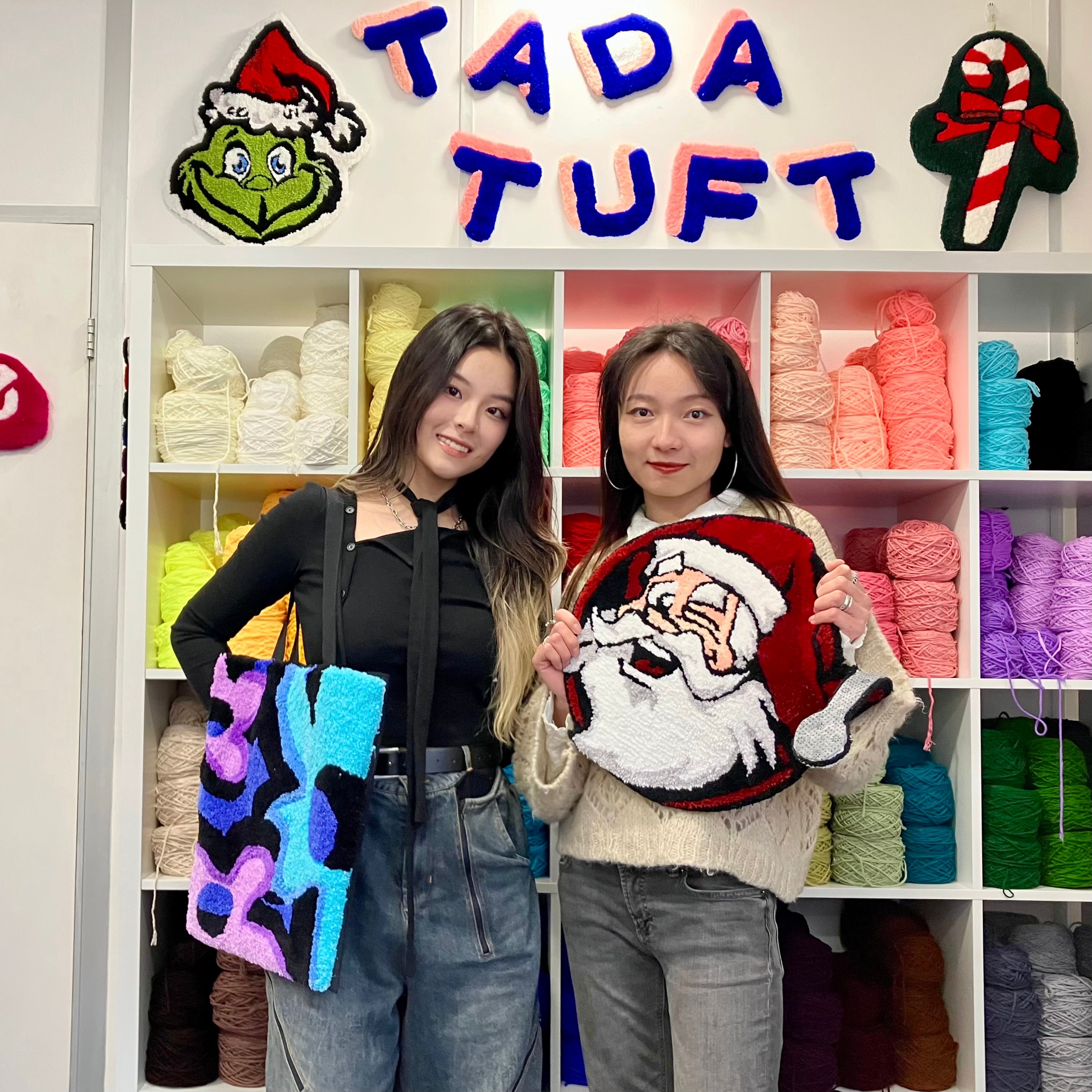Founded in 2022 by Lulu and Kai, Tadatuft started as a testament to the power of creativity in overcoming challenges. During the lockdown, as the world slowed down, we discovered tufting. What began a as a simple pastime to fill the quiet hours soon blossomed into a profound passion. With our backgrounds in design from the University of Leeds, we were captivated by the magic of turning our 2D drawings into tangible, tactile creations. We envisioned a place where people could gather, learn, and find solace in creation, just as we had during those uncertain times. Thus, Tadatuft was born in Leeds -- a city that had shaped our creative philosophies and where we felt a deep-rooted connection.Â